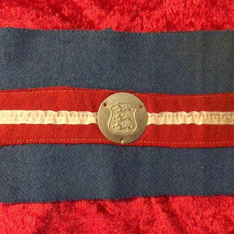 Her er armbindet for frihedskæmper, sabotør, partisan eller de illegale som de blev kaldt, kært barn har mange navne.
