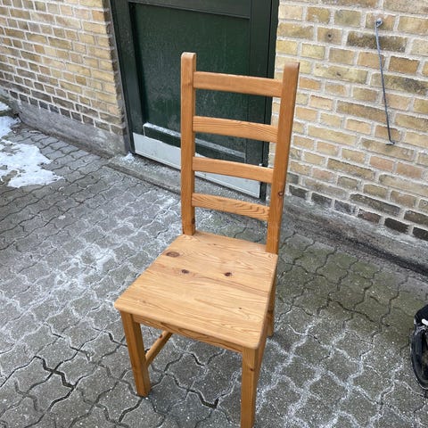 To styk cirka 100 år gamle skal sælges billigt og hurtigt træstol 200 kr pr stk massivt træ ingen skruer eller søm snedker kvalitet træstol spisebordsstol fyrretræ
