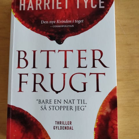 Bitter frugt , Harriet Tyce , genre: krimi og spænding, Bogen er en Thriller fra forlaget Gyldendal fra 2019 på 348 sider og måler 16 x 23 cm den er hæftet med hilsen fra forlaget.