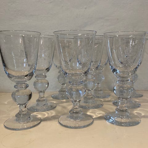 Glas, H C Andersen Pokalen og Portvin, Holmegaard, Der er 12 af hvert glas H C Andersen Pokalen og Portvins glas, sælges samlet eller også kan der vi godt aftalen noget ang mindre. Byd gerne?? 200kr stk for et pokalen og 100kr for portvin.