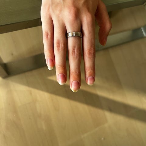 Ring, titanium, Marcel Drucker, Virkelig Smuk Titanium Ring fra Marcel Drucker i Rosa guld Tone, Smukt Designet som en Bred Ring i Midte m. Funklende Midnats Blå Zirkoia, og 2 Smallere Ringe, èn på Hver Side.. men Dog Èn Ring.