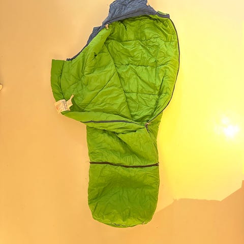 Sovepose, Mammut, God sovepose. Ny pris 999.00 kr for tilsvarende sovepose i spejdersport. Passer fra 125-160 cm barn. Smart da nederste del kan lynes af, så den bliver kortere og derfor stadig er god at holde varmen i, da der ikke er unødvendigt luft der skal opvarmes. Vi har brugt den på ture i Norge på fjellet og Sverige om sommeren samt shelter tur i dk om efteråret og foråre, børn har fint kunne holde varmen