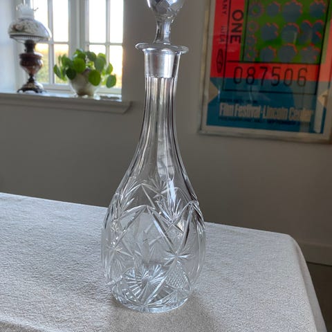 Glas, Karaffel, Smuk antik krystal karaffel med hank , skænketud og prop