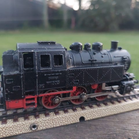 Motor -fjeder ok. Afskalninger. forlygte røget af, men er der. Med nøgle Koblinger er der, om det er de rigtige ved jeg ikke. Beskidt-afrenses. Incl maerklin signal. Kan afsendes med GLS til nærmeste afhentningssted. Oplyst pris er eksl fragt. 1,6kg. Betaling MobilePay