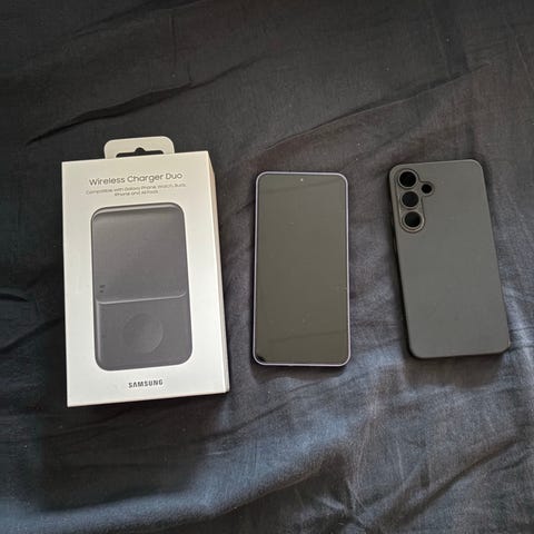 Kvittering haves stadig, så reklamationen stadig gælder. Sort silikone cover følger med.