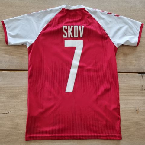 Dansk landsholdstrøje fra 2020 med #10 Christian Eriksen bagpå. Størrelsen er XL, men som det oftest er med disse Hummel-trøjer så fitter den nok bedst en LARGE.