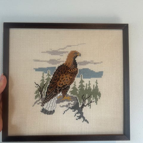 Broderet billede , Ørn med 2 hoveder /, Super flot broderet billede af ørn med 2 hoveder i flot ramme sælges.
