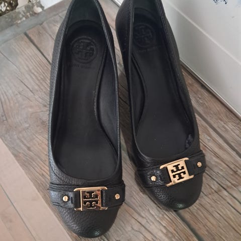 Tory Burch stiletter lyseblå ruskind guldspænde