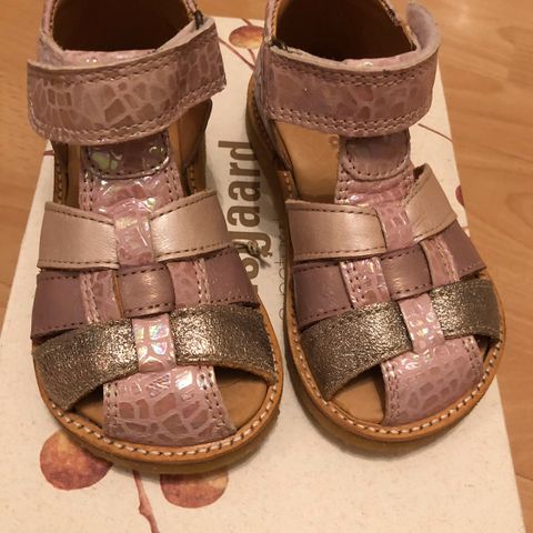 Bisgaard Rose Gold Coco sandal sælges fordi jeg har købt en for lille størrelse. De er brugt 3 gange hvoraf den ene var i udflytterbørnehaven, hvorfor de ser lidt beskidte ud. Men de er ikke formet efter fødderne endnu, så på den front er de så gode som nye. De sidder virkelig godt på fødderne. Og jeg synes selv det er en god kombination af praktisk og pæn sko, så da jeg konstaterede at de var for små skyndte jeg mig at købe nogle nye inden modellen blev udsolgt.