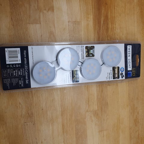 2 stk varm hvid med smart bevægelsessensor. Bruger aaa batteri. Inkl monteringsklæbepuder