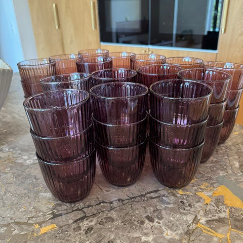 To store dispensere af glas til saftevand, drinks eller andre drikkevarer. Perfekte til festen, hvor gæsterne selv kan tappe deres drikkevarer. Den praktiske fod gør det nemt at sætte glasset under hanen, uden at dispenseren skal stå med hanen ud over en bordkant. Dispenserne sælges samlet for 200 kroner eller enkeltvis for 125 kroner stykket.