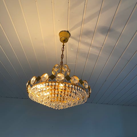 Prismekrone med 4 lys, intakt med alle prismer.