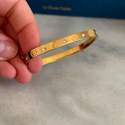 Armring, Flot slange armring med klemmesystem. I tvivl om materiale. Måske stål- stemplet S. Ø: 6 cm indvendig.
