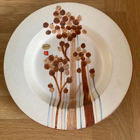 Fad i højbrændt stentøj fra Søholm Danmark. H: 6,5 cm. Oval: 29,5 x 26 cm. Perfekt stand. Ingen skår eller revner.
