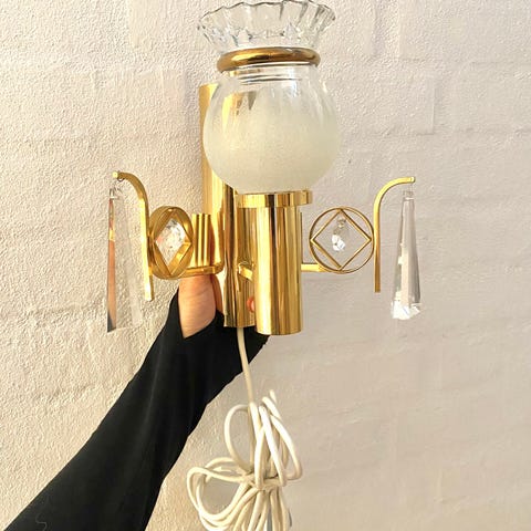 Vintage Wall Sconce - messing væglamper med kulørte glas - knapt Antikke
