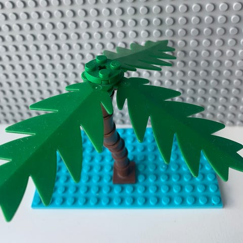 Flot retro LEGO Belville palmetræ. Består af 3 dele - stamme, palmetop og plade øverst.