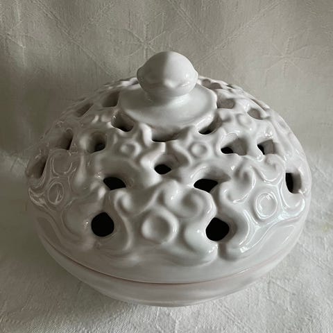 Sød Bonniere fra Hjorth. Den har meget små afslag inden i låget.