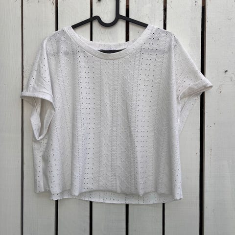 Råhvid Zara broderie anglaise top. Fra røg- og dyrefrit hjem.
