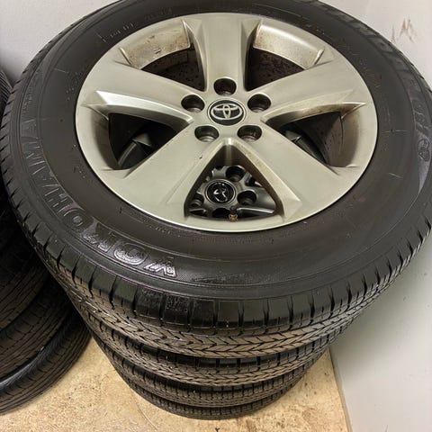 Fælge som på foto fra ældre Rav4-model købes, ikke nødvendigvis helt sæt, ikke nødvendigvis med så mange ridser som viste 😉, farve på center-skive underordnet.