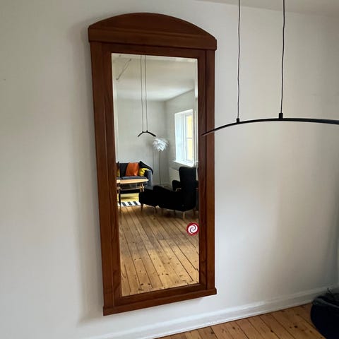 Smukt stort retro spejl i mørkt træ sælges H 1.26 B 55
