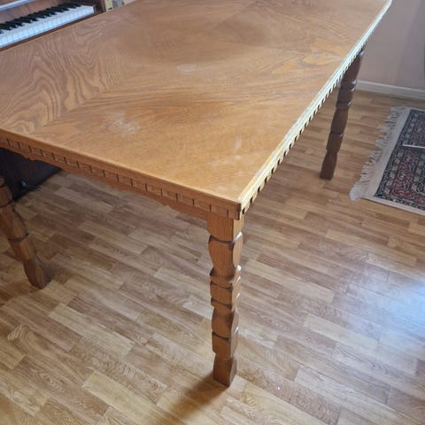 Bordet er i funktionelt men har nogle dybe hakker. Der følger ikke udtræksplader med