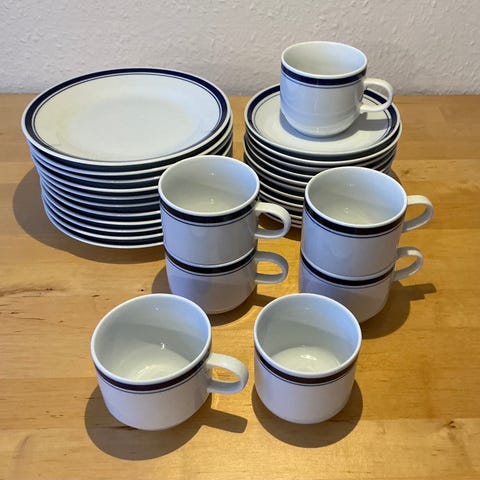 Der er mere end 10 kopper og kagetallerkener som kan medfølge . . NU NEDSAT . FØR KR 250,-