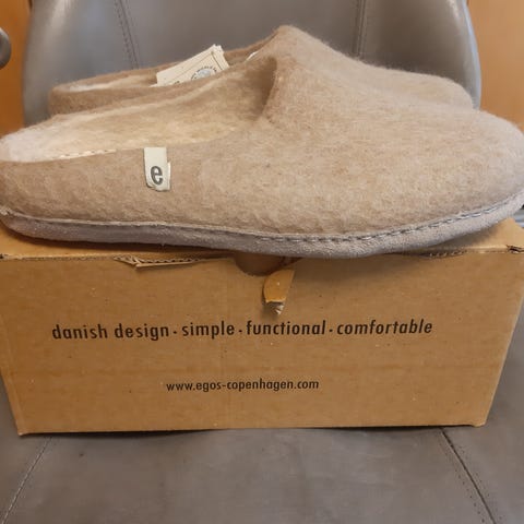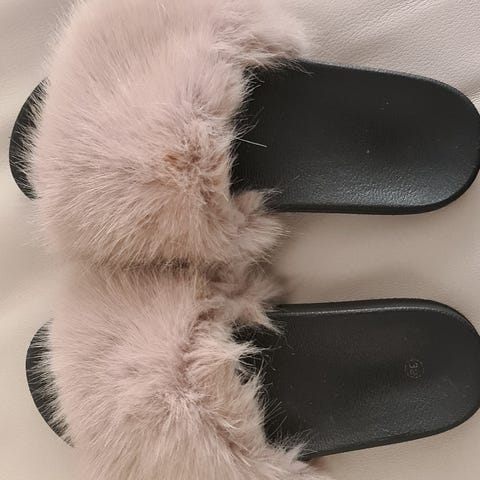 Slippers i sort skind/[velour str. 41 -