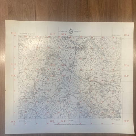 Målt i 1878, rettet i 1907 og vejrevision i 1942. Målestoksforhold 1:20.000