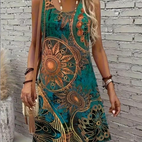 Ferskenfarvet strandsari med broderi og pailetter