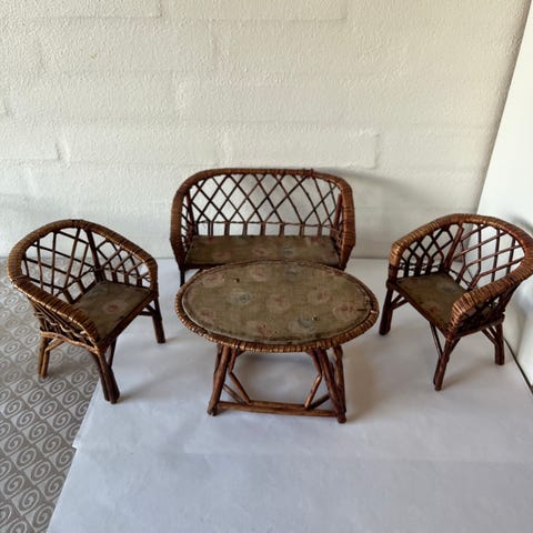 Dukkemøbler, Træ, pil og bambus., 115 år gl.,