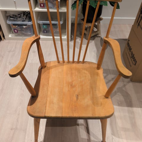 Ukendt Mærke Træ Stol Med Armlæn Beige Betræk