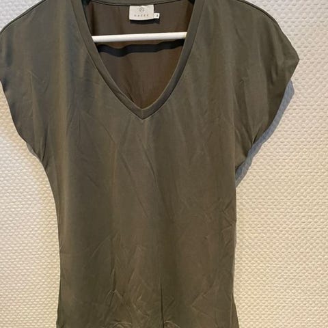 T-shirt top, Pause Café, natur-caramel, lidt skrå forkant, viscose/elasthane, str 46 (passer str 40-42). Måler 50 cm i brystvidde og 54 cm i længde. Kun brugt få gange, så meget velholdt. Har ikke været i tobaksrøg. Nypris 700 kr. Kan afhentes eller sendes med GLS, og Mobile Pay til mig. (Bruger ikke Fiks færdig modellen).