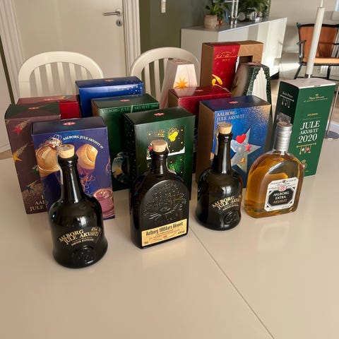 Aalborg Juleakvavit - tomme / 16 stk. (11 stk med æsker) + diverse emballage