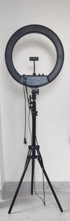 dæmpbar LED brugt få gange, fremstår som ny. Medfølger fjernbetjening, telefonholder og taske. Perfekt til makeup, videooptagelse og billeder. Nypris 1500 kr – sælges for 800 kr.