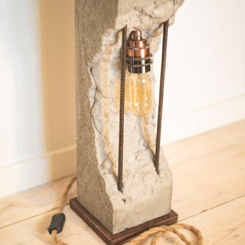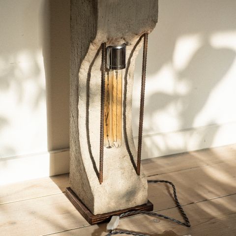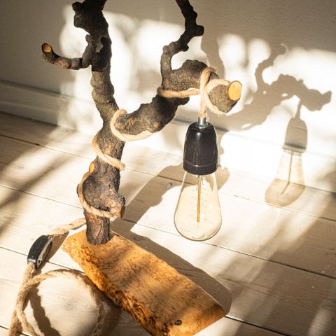 This one-of-a-kind handmade lamp combines natural elements with industrial style. The sturdy concrete base supports a beautifully preserved oak branch, creating a striking organic centerpiece. A rope-style cord adds a rustic touch, while the vintage Edison bulb casts a warm, inviting glow.