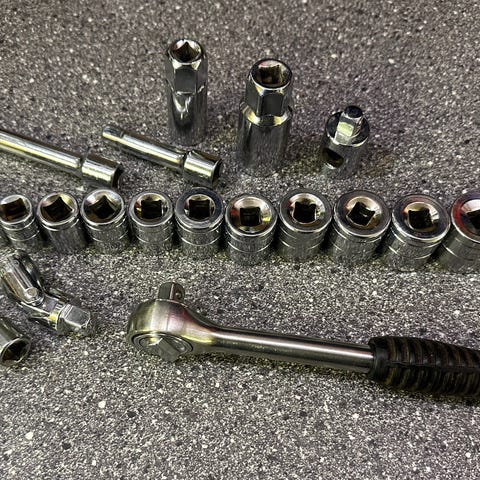 Topnøglesæt vintage 20 dele i metalkasse Hærdet forkrometstål