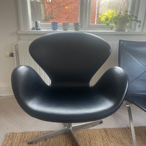 Fin sort læder stol i bedste stand sælges med skammel