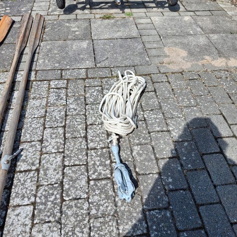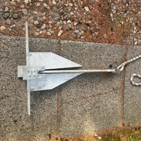Pladeanker galvaniseret 40 kg med en længde på 129 cm incl. sjæklen, en bredde på 100 cm. De nævnte længder fremgår af billeder/tommestok. Mærke kan ikke tydes, men sandsynligvis klassificeret, da det er fra et marinefartøj.