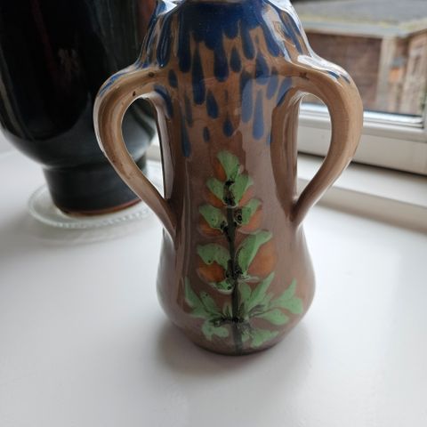 Sjælden gammel vase i toplæker glasur sælges. Der er 4 forskellige artwork på hver af de 4 sider i forhøjet niveau