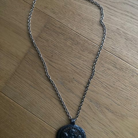 Fransk kunstner fra Nice. Længde: 45 cm. Hornpladen er 3,8 x 2 cm. God lås, der er nem at låse.