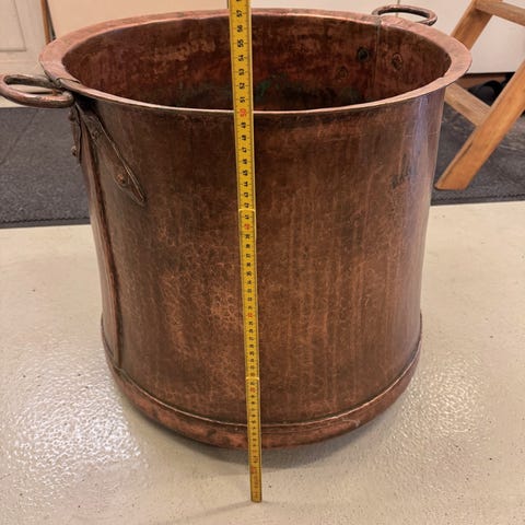 Antik kobber limspand - cirka 150 år. løs Inderbøtte og yderdel vejer 2.4kg