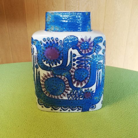 Vasen er i god stand der er dog små krakeleringer og et meget lille afslag på den øverste kant