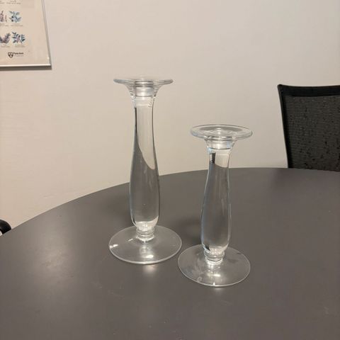 Tre Holmegaard stager i klart glas. Design af Michael Bang for Holmegaard Glasværk.