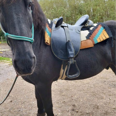australsk stok sadel i god stand. Den er beset af sadelmager marts 2025 og stand er god. Den skønnes til at være 18 tommer, fit 4,5/ bred til x bred. En bred model. Gjorden har en strop der er knækket, denne vil kunne laves for 3-500 kr, samt er gjorden gået i syning i den ene side kosmetisk. alt efter størrelse på hest er det ikke sikkert at den er nødvendigt at forlænge. Der mangler en enkelt D ring forrest på sadel. Der medfølger et uld underdækken samt en sadeltaske.