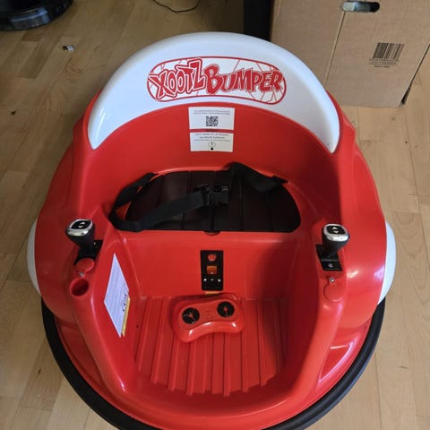 Tivoli / radiobil til børn, fra 60 erne, kører på 12v bilbatteri og den fungerer, ca.mål 105 lang og 50 bred.