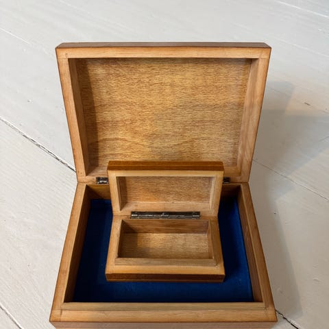 Sødt lille skrin i lyst træ f.eks. til decopage eller du selv kan male.