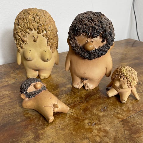 2 nuttede keramik figurer forestillende Adam og Eva.De måler i højden 5cm.De er intakte.De er lavet af Federico Fabbrini (FF) og er italienske.