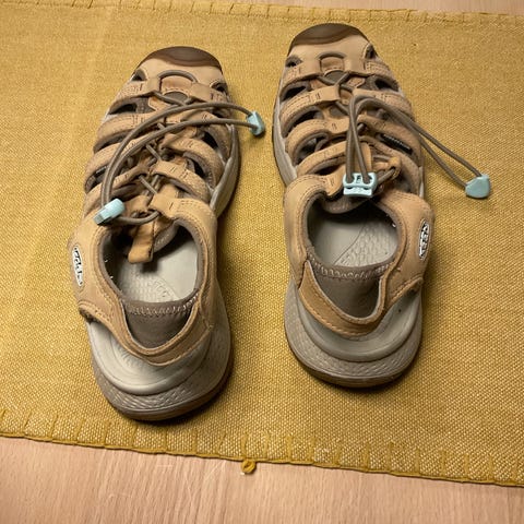 Keen vandresandal, model Whisper. Kun brugt få gange da de er en smule for store til mig. Str 8 (= 38,5). God svangstøtte, Quick lace lukning - se flere specifikationer på relevante hj.sider.