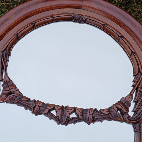 Flyttesalg Unikt antikt mahogni spejl i god stand med håndmalet glas motiv af græsk gud ( ? ).