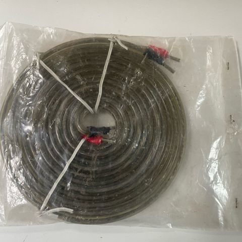 Meget kraftigt 6 mm2 højttalerkabelkabel - jeg kender desværre ikke type/navn. Sælges for 10 kr/m. Jeg har 3 stykker på hhv 14 m (140 kr), 16 m (160 kr.) og 18 m (180 kr). Det har været brugt til Surround anlæg.